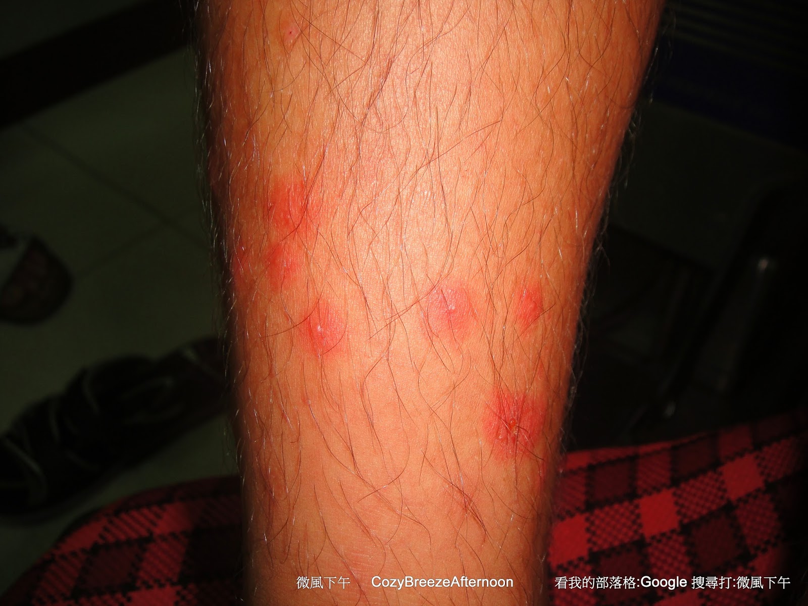 理章說是跳蚤咬的,他下午去學校體育器材室服務,一進去就一群小東西跳到他穿短褲的腳踝,回到教室發現出現許多顆紅疹